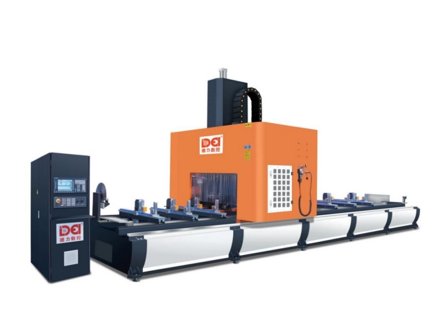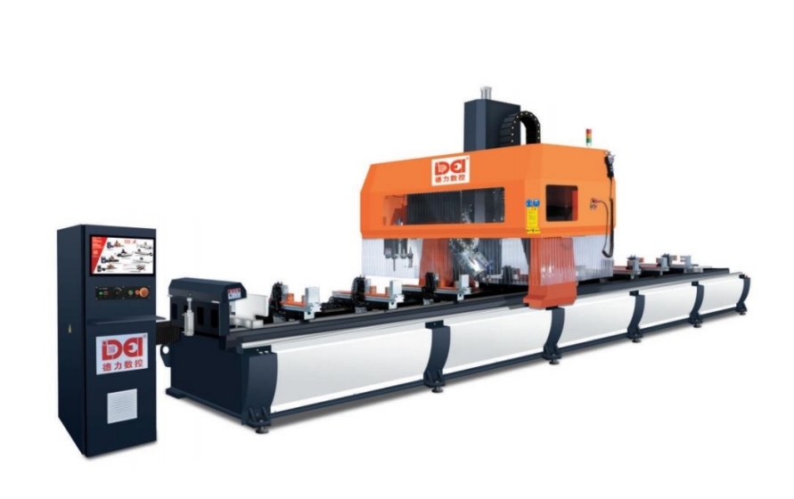 MC4軸型材加工中心,友好人機界面,設備操作簡便,一次專夾可以完成銑銷、鉆孔、攻牙、倒角等多功能的精密加工,適合作用于中長型材的多面加工。